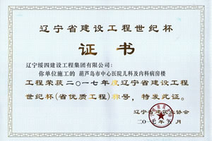 “葫蘆島市中心醫(yī)院兒科及內(nèi)科病房樓”榮獲2017年度遼寧省建設(shè)工程世紀杯稱號