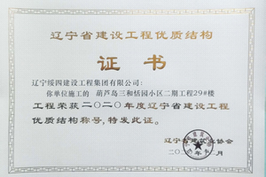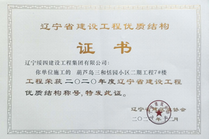 “葫蘆島三和恬園小區(qū)二期工程7#樓”榮獲2020年度遼寧省建設(shè)工程優(yōu)質(zhì)結(jié)構(gòu)稱號