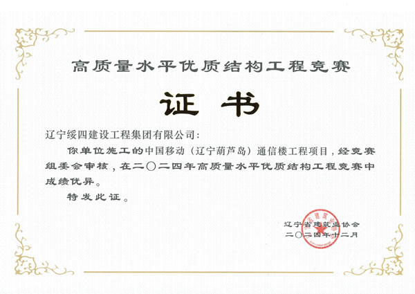 中國移動(遼寧葫蘆島)通信工程項目被評為2024年高質(zhì)量水平優(yōu)質(zhì)結(jié)構(gòu)工程