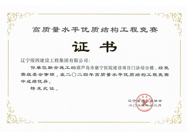 葫蘆島市康寧醫(yī)院建設項目門診綜合樓被評為2024年年高質(zhì)量水平優(yōu)質(zhì)結(jié)構(gòu)工程