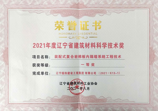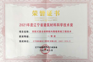 2021年度遼寧省建筑材料科學(xué)技術(shù)一等獎(jiǎng)