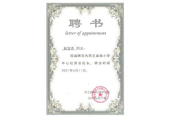 藥王廟鎮(zhèn)小學(xué)中心校榮譽(yù)校長