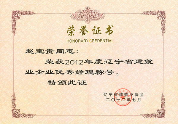 遼寧省建筑企業(yè)優(yōu)秀經理