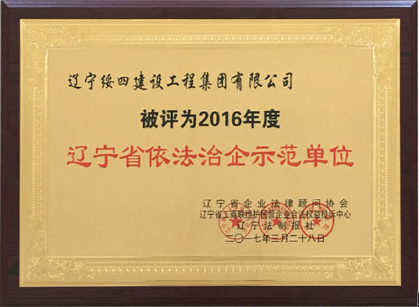 表彰會上,遼寧省企業(yè)法律顧問協(xié)會常務副會長兼秘書長侯成良對2016年度評選“遼寧省依法治企示范單位、遼寧省優(yōu)秀企業(yè)法律顧問、遼寧省企業(yè)法制論文一等獎”相關情況做了評選說明; 我公司榮獲2016年度 “遼寧省依法治企示范單位”。