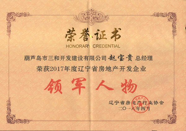 總經(jīng)理趙寶貴獲得“遼寧省本土房地產(chǎn)開發(fā)企業(yè)領(lǐng)軍人物”殊榮。我公司會(huì)在十九大精神的指引下,踏上行業(yè)發(fā)展的新征程,促進(jìn)遼寧省房地產(chǎn)行業(yè)在中國特色社會(huì)主義建設(shè)新的時(shí)代背景下繼往開來,健康發(fā)展,繼續(xù)展示遼寧省房地產(chǎn)行業(yè)的企業(yè)家精神和行業(yè)風(fēng)采,樹立行業(yè)發(fā)展新標(biāo)桿。
