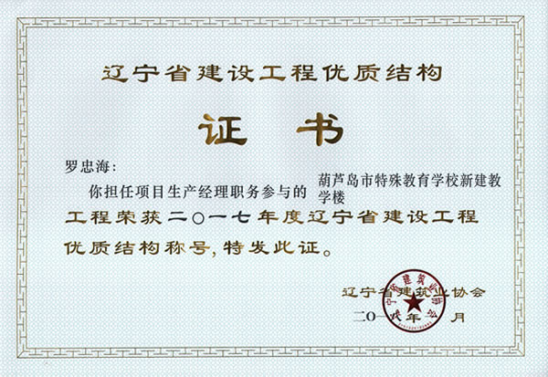 會上,國家住房和城鄉(xiāng)建設部工程質(zhì)量安全監(jiān)管司副司長吳慧娟女士在本次會議上作了《建筑行業(yè)發(fā)展趨勢》重要報告。大會表彰了2017年度遼寧省建筑業(yè)優(yōu)秀企業(yè)、工程建設質(zhì)量管理優(yōu)秀企業(yè)、優(yōu)秀信用企業(yè)、優(yōu)秀經(jīng)理、優(yōu)秀項目經(jīng)理以及第六批建筑業(yè)綠色施工示范工程、世紀杯工程等獎項。我公司榮獲“2017年度遼寧省建筑業(yè)優(yōu)秀企業(yè)”、 “2017年度遼寧省工程建設質(zhì)量管理優(yōu)秀企業(yè)”、 羅忠海榮獲“2017年度遼寧省建筑業(yè)企業(yè)優(yōu)秀項目經(jīng)理”、 韓凱夫榮獲“2017年度遼寧省建筑業(yè)企業(yè)優(yōu)秀項目經(jīng)理”、 王鐵山經(jīng)理榮獲“2017年度遼寧省建筑業(yè)企業(yè)優(yōu)秀項目經(jīng)理”、“ 葫蘆島市特殊教育學校新建教學樓”榮獲遼寧省世紀杯工程、“葫蘆島市特殊教育學校新建教學樓”與 “葫蘆島市龍港區(qū)中心幼兒園”“ 葫蘆島市公安局業(yè)務技術用房”榮獲遼寧省優(yōu)質(zhì)主體工程、羅忠海經(jīng)理承建的葫蘆島市龍港區(qū)中心幼兒園榮獲“第六批遼寧省建筑業(yè)綠色施工示范工程”。
