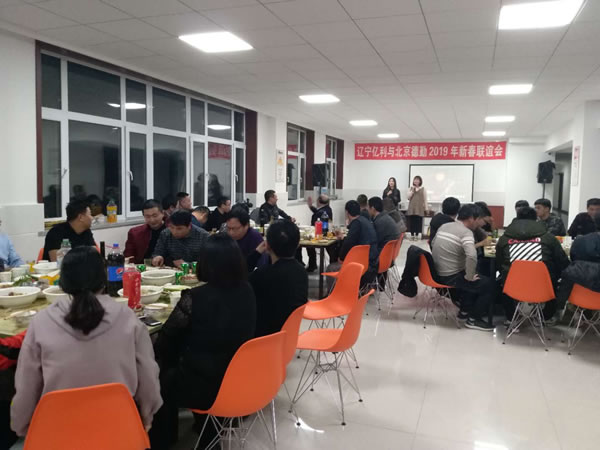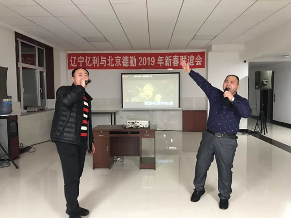 值此新春佳節(jié)之際,作為東道主的我們?yōu)榱吮硎緦Φ虑诠就碌臒崃覛g迎與新春祝福,當(dāng)晚,在領(lǐng)導(dǎo)的安排下,我公司舉辦了一場“遼寧億利與北京德勤2019年新春聯(lián)誼會”。聯(lián)誼會上大家積極踴躍的表演才藝,機(jī)電設(shè)備部部長潘曉閣和機(jī)電設(shè)備部賀善強師傅高歌一首《眾人劃槳開大船》將整個聯(lián)誼會推上了高潮。