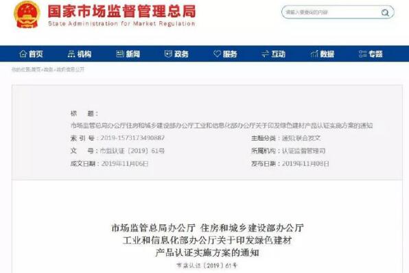 為貫徹落實《質(zhì)檢總局 住房城鄉(xiāng)建設(shè)部 工業(yè)和信息化部 國家認監(jiān)委 國家標準委關(guān)于推動綠色建材產(chǎn)品標準、認證、標識工作的指導意見》,推進綠色建材產(chǎn)品認證工作,市場監(jiān)管總局、住房和城鄉(xiāng)建設(shè)部、工業(yè)和信息化部制定了《綠色建材產(chǎn)品認證實施方案》。