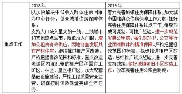 解讀:與2018年相比,此次會(huì)議中將租賃住房分成了市場(chǎng)化租賃和政策性租賃兩個(gè)領(lǐng)域。其中,政策性租賃住房首次提到。