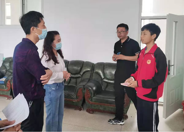 6月17日,在荒地鎮(zhèn)黨委、婦聯(lián)領(lǐng)導(dǎo)的陪同下,遼寧綏四建工集團代表來到荒地鎮(zhèn)中學(xué),牽手六年級品學(xué)兼優(yōu)的貧困學(xué)生岳陽,為他送來2000元助學(xué)金,并表示大學(xué)畢業(yè)前每個學(xué)期他都會準(zhǔn)時收到這筆錢。