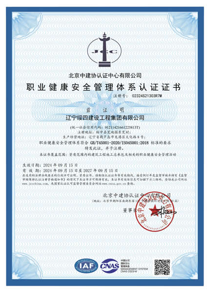 職業(yè)健康安全管理體系認證證書