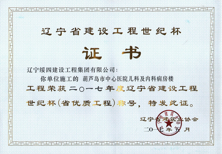 “葫蘆島市中心醫(yī)院兒科及內(nèi)科病房樓”榮獲2017年度遼寧省建設工程世紀杯稱號