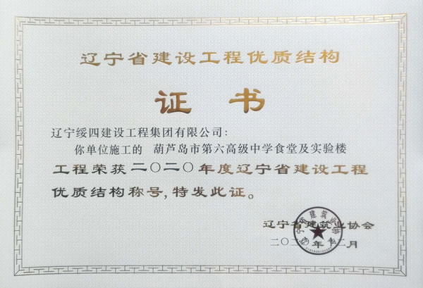 “葫蘆島市第六高級中學(xué)食堂及實(shí)驗(yàn)樓”榮獲2020年度遼寧省建設(shè)工程優(yōu)質(zhì)結(jié)構(gòu)稱號
