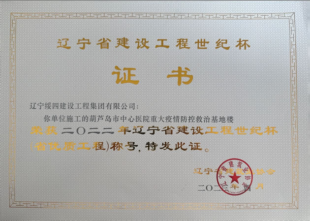 葫蘆島市中心醫(yī)院重大疫情防控救治基地樓榮獲 2022年度遼寧省建設(shè)工程世紀(jì)杯(省優(yōu)質(zhì)工程)稱號