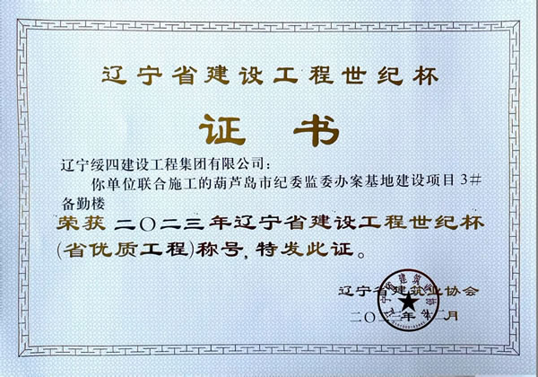 葫蘆島市紀(jì)委監(jiān)委辦案基地建設(shè)項目3#備勤樓 榮獲2023年遼寧省建設(shè)工程世紀(jì)杯(省優(yōu)質(zhì)工程)稱號